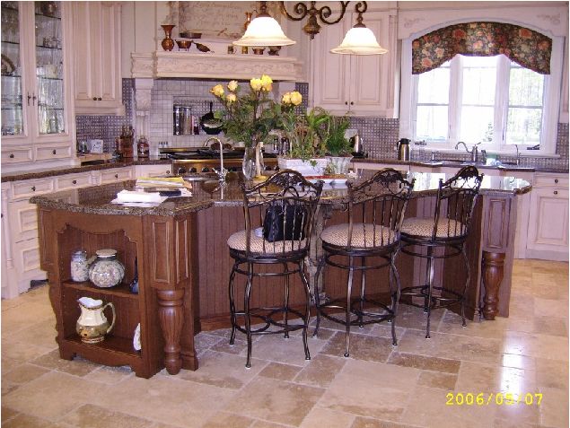 Island with open shelves.